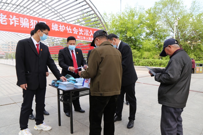 为深入推进打击整治养老诈骗专项行动,切实维护老年人的合法权益,守护好老年人的“养老钱”,保护老年人的财产不受侵害,依法严惩养老诈骗违法犯罪,延伸普法工作触角,全力营造安全稳定的社会环境,5月26日上午,同江法院到东北亚广场开展“打击整治养老诈骗行为,维护老年人合法权益”普法宣传活动。