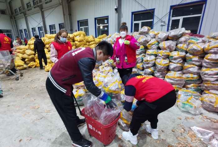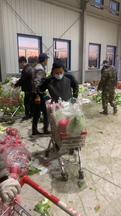 傍晚时分接到紧急通知,同江法院组织干警按照市疫情防控指挥部的安排到达物流仓库,参与任务的干警迅速组成小组分别肩负起分拣员,运输员的责任,助力筹备蔬菜包任务。
