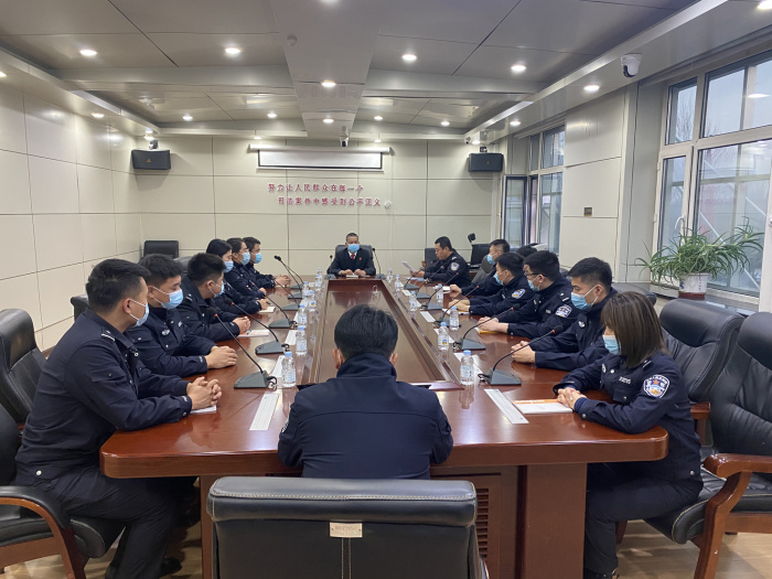 会上,法警大队负责人王永财传达了《黑龙江省高级人民法院关于全省法院违反“十个严禁”典型安全的通报》、《容错免责实施办法(试行)》。会议指出,新时代政法干警“十个严禁”划定了政法干警的思想“红线”和行为“底线”,是全国政法队伍教育整顿的重要制度成果,是推进全面从严管党治警的重要举措,要深入学习领会,确保准确理解,内化于心。