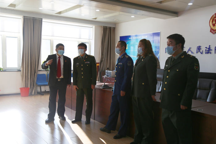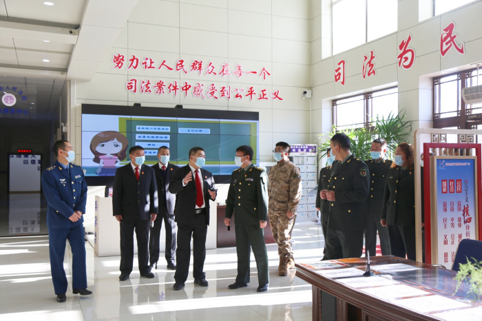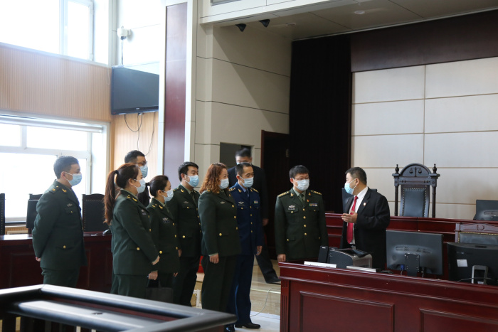官兵代表先后参观了安检大厅、诉讼服务中心、科技审判法庭、刑事审判庭、执行指挥中心等场所,法院党组书记、院长郑玉祥详细讲解了法院审判执行工作流程,对法院“一站式”诉讼服务和执行指挥中心进行了详细的介绍让官兵们对法院工作有了更全面和直观的了解。