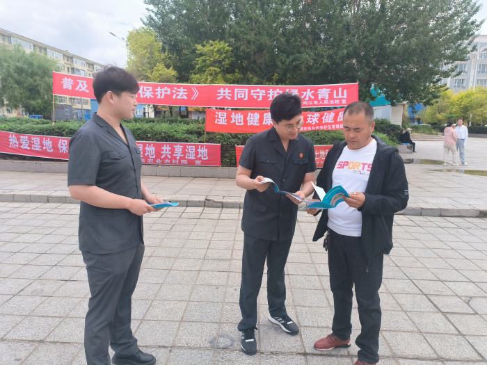 在《中华人民共和国湿地保护法》(以下简称《湿地保护法》)实施一周年之际,也是我国加入《湿地公约》三十一周年,为加强《湿地保护法》宣传,凝聚全社会珍爱湿地、保护环境的强大共识。6月10日,同江市人民法院应市林草局邀请,共同开展《湿地保护法》宣传活动。
