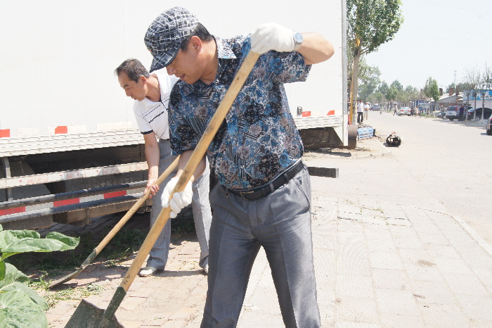 同江法院干警在清理环境卫生