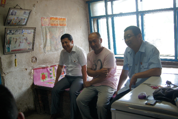 同江法院干警同村委会主任和村会计交谈