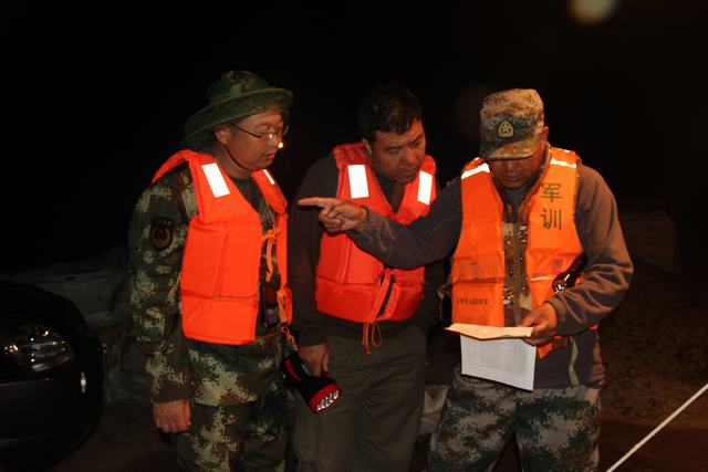 图为法院孙副院长(左)与干警讨论巡堤方案