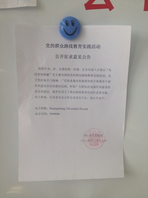 按照中央、省、市委的统一部署,在全市深入开展以“为民务实清廉”为主要内容的党的群众路线教育实践活动。为了更好地开门纳谏,广泛收求我市各级领导班子和领导干部作风建设存在问题的反映,听取广大群众对加强作风建设的意见和建议,我单位设立了群众路线教育活动征求意见箱、电子邮箱,征求意见电话和征求意见平台。现公告如下: