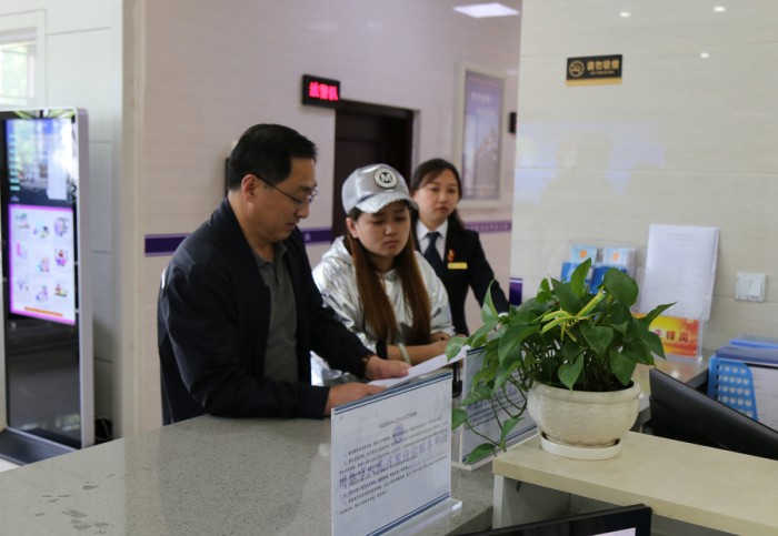 随后,为找准和解决服务窗口影响办事效率问题,督促做好窗口服务工作,刘雪峰来到同江法院诉讼服务中心窗口,通过“体验式办公”的形式,现场体验办事流程。经过领号、排队,刘雪峰与当事人一起按照程序提交了起诉状、借据等起诉相关材料,在工作人员受理审核后,1件民间借贷合同纠纷案件被登记受理。