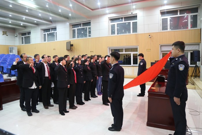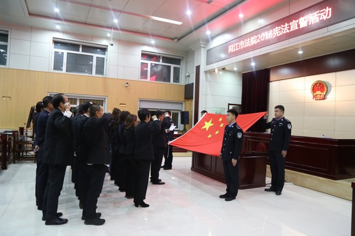 12月4日下午,为弘扬宪法精神,激励法院干警忠于宪法、遵守宪法、维护宪法,同江法院进行了宪法宣誓活动。宣誓活动由党组成员、副院长杨红军同志领誓,全体在职干警面对国旗,作出庄严宣誓。通过宣誓活动,干警纷纷表示,一定会时刻牢记肩负的崇高使命和历史责任, 坚决维护宪法尊严和权威,弘扬宪法精神,尽职尽责的做好审判执行工作,在今后工作中再创佳绩。