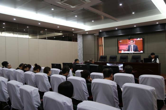 12月18日上午10时,同江市人民法院认真组织全院干警收听收看中央庆祝改革开放40周年大会实况。