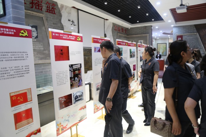 干警们首先参观了“不忘初心,牢记使命——党旗、党徽、党章”专题展,讲解员分别介绍了中国共产党党旗、党徽、党章的发展历程和党的光辉历史。干警们认真参观、用心体会,仔细观看展览馆里的一件件展品,默默感悟那段苦难辉煌的峥嵘岁月,回顾中国共产党人为民族独立和国家富强做出的卓越贡献,进一步坚定了全身心地投入到党的伟大事业中的信念和决心。