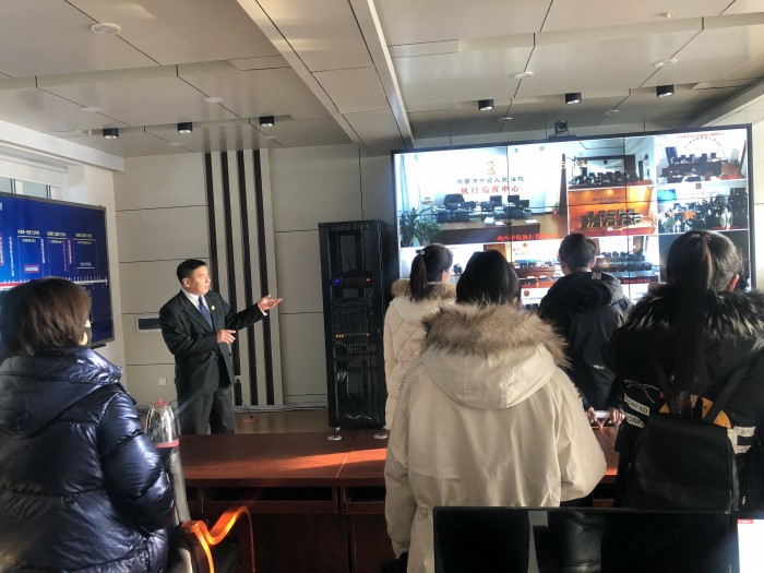 在导诉员的带领下,社区工作人员及居民代表先后参观了信访接待中心、立案大厅、诉调对接中心、执行指挥中心等场所,了解法院立案流程、诉讼常识、审判程序、执行程序等,对法院的信息化建设有了直观的印象。参观结束后,进行了座谈交流。党组成员、副院长张欣海详细讲解了法院的诉讼流程、执行流程,民事审判庭庭长张文涛解答了法律方面的疑问。