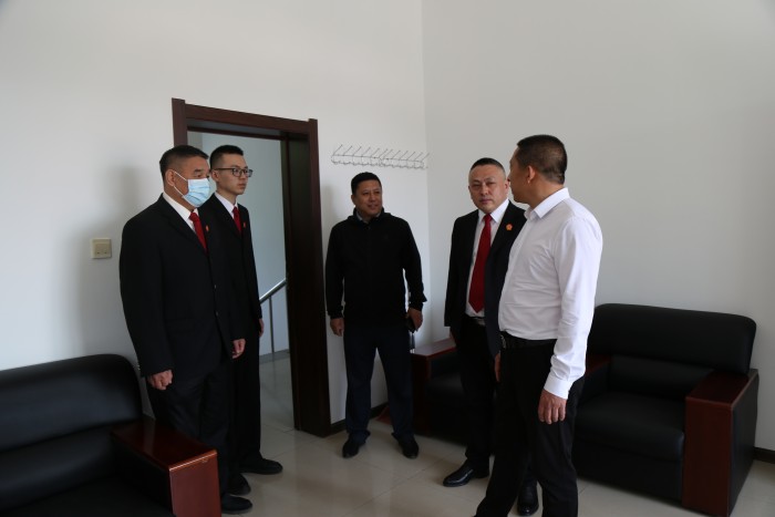 韩辉一行首先来到乐业法庭检查法庭建设工作,对乐业法庭安保工作给予充分肯定。